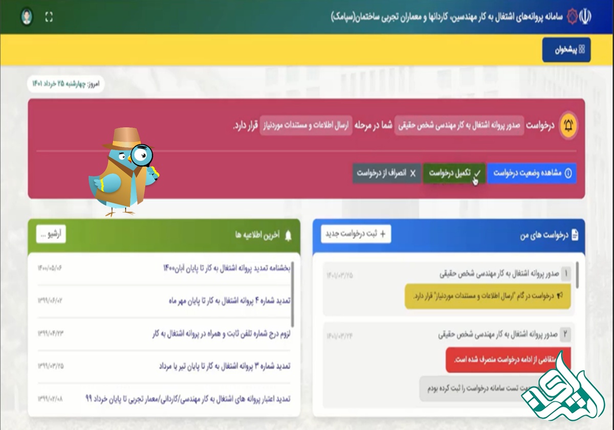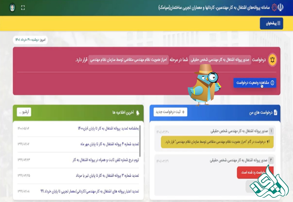 در این قسمت می توان وضعیت درخواست را بررسی کرد.