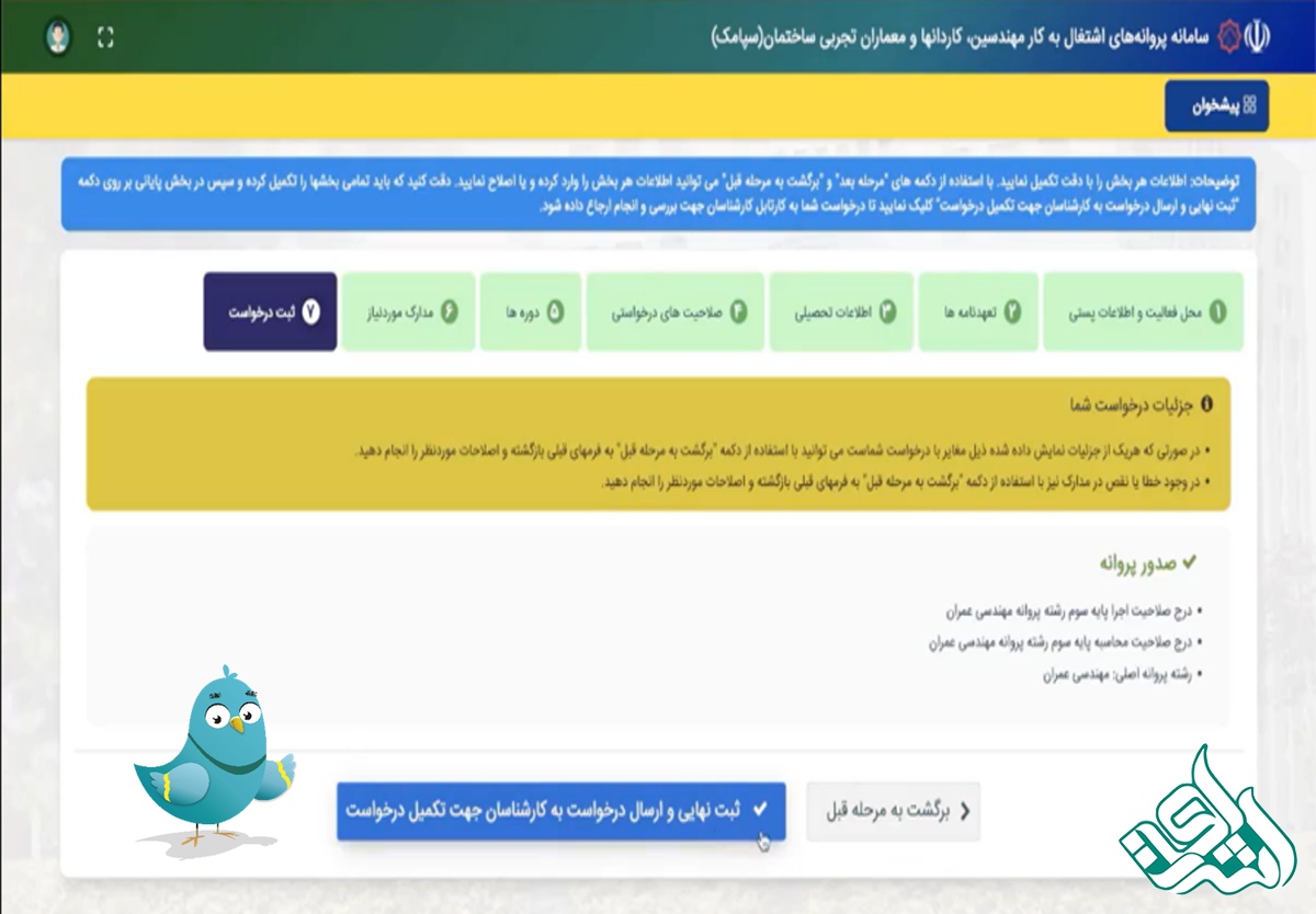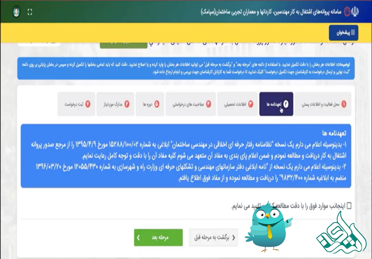 4- مطالعه شرایط و ضوابط و در نهایت ثبت درخواست صدور مجوز
