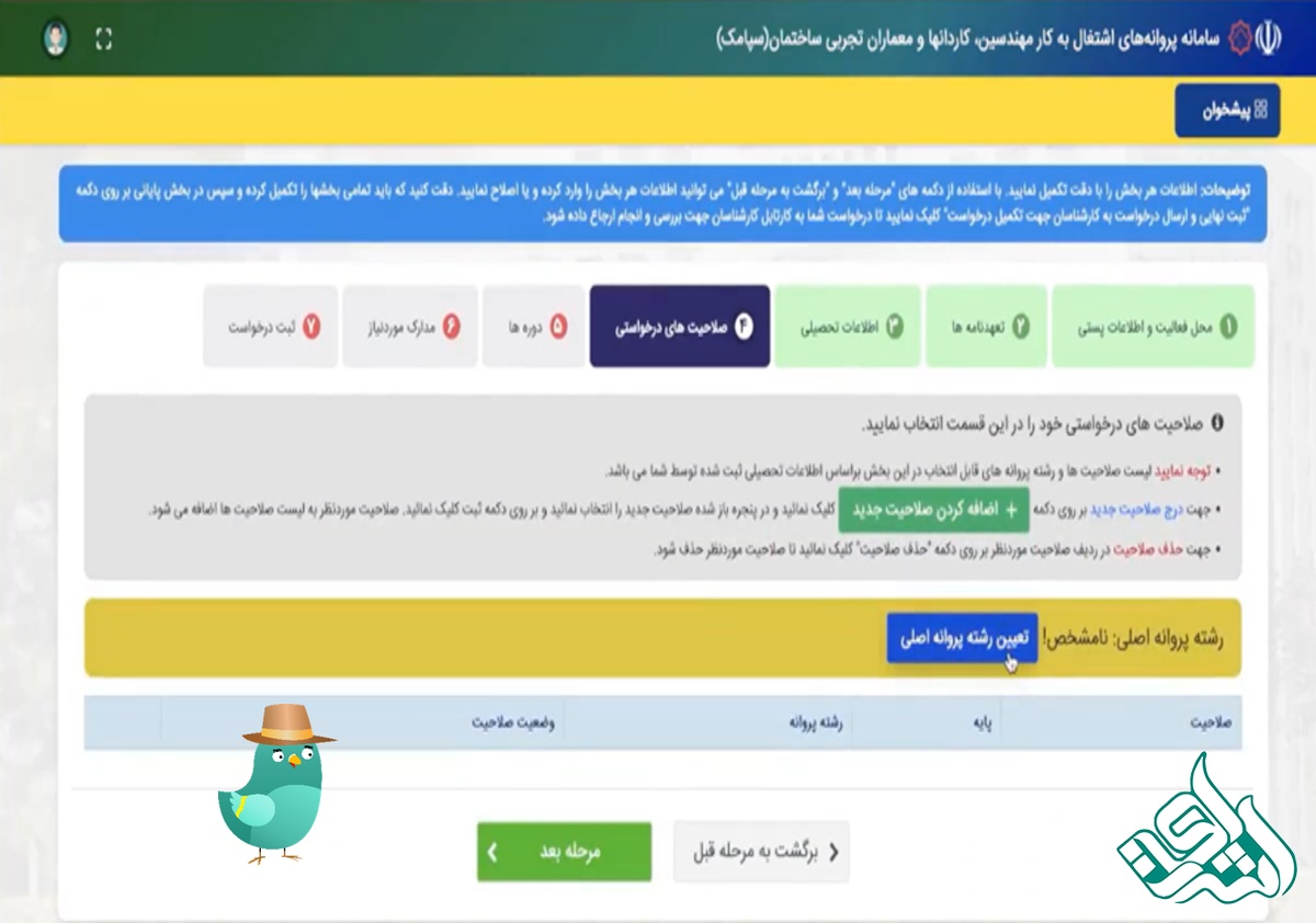 صلاحیت های درخواستی: در این مرحله رشته مورد نظرمان را باید انتخاب کنیم.