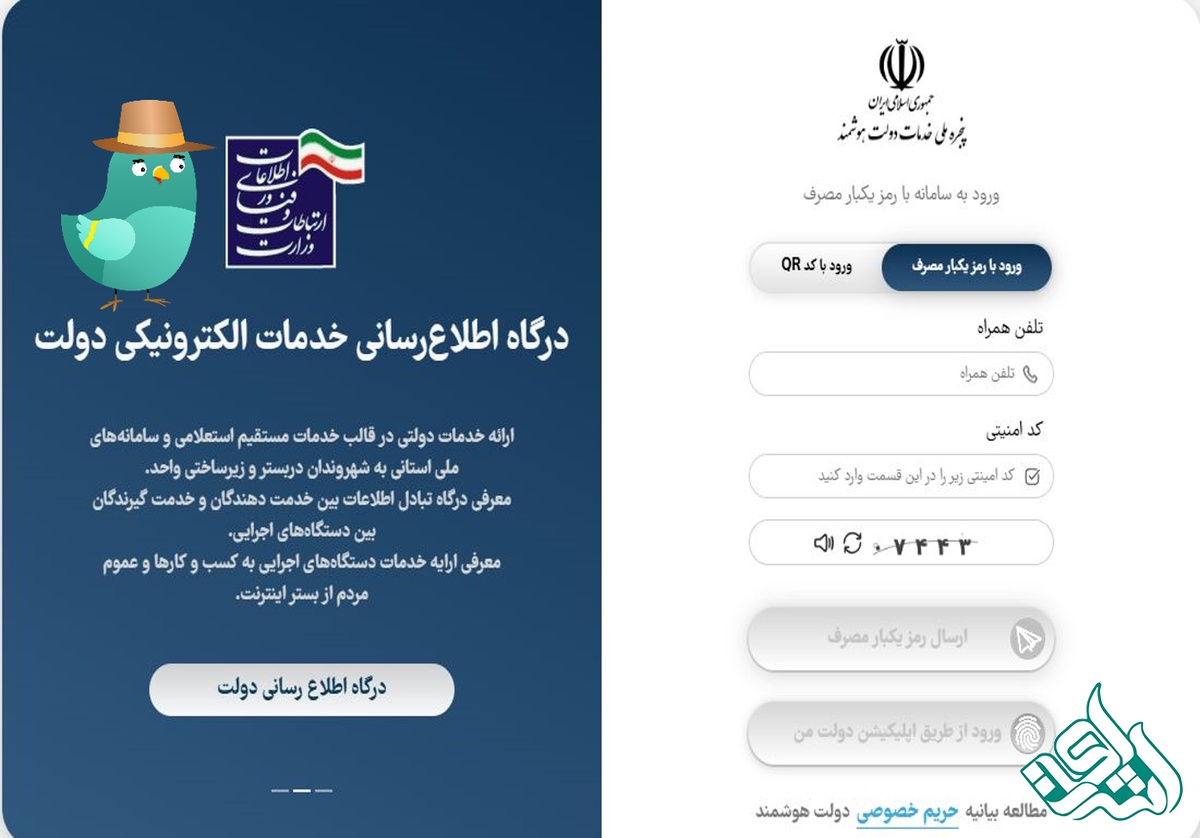 1- ورود به سامانه و درخواست رمز یکبار مصرف