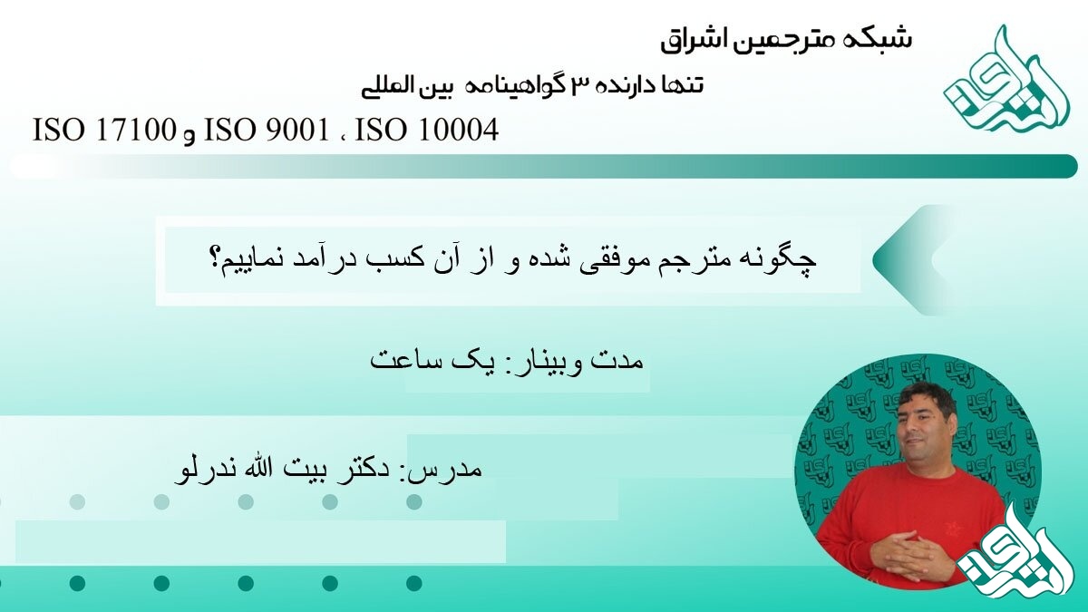 شبکه مترجمین اشراق: با توجه به اینکه حرفه مترجمی یکی از پیشههای پرطرفدار میباشد، افراد زیادی وجود دارند که در زمینههای مختلف و به زبانهای مختلف ترجمه مینمایند. مترجمان برای رسیدن به موفقیت و کسب درآمد باید همواره دارای ویژگی های مخصوصی باشند که در این وبینار به بیان هر یک از آنها میپردازیم.