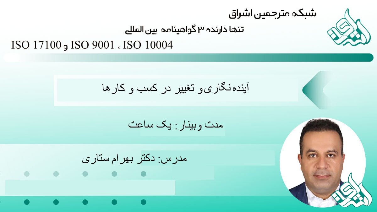 شبکه مترجمین اشراق: محیط کسب وکار در دنیای امروز بسیار متغیر و ناپایدار است. به منظور ایجاد بهره وری و کسب موفقیت بیشتر، مدیران و صاحبان کسب و کار نیازمند برنامه ریزی مناسب منابع و زمان برای آینده هستند. در این وبینار راجع به آینده نگاری و تغییر در کسب و کارها صحبت خواهد شد.